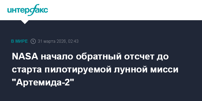 NASA начало обратный отсчет до старта пилотируемой лунной мисси "Артемида-2"