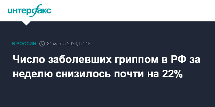 "На 13-й неделе 2026 года в Российской Федерации зарегистрировано 641 тыс. случаев заболеваний ОРВИ и гриппом (...) Отмечается снижение числа заболевших гриппом на 21,9%. По результатам лабораторного мониторинга, в структуре вирусов гриппа преобладают вирусы А(H3N2), также продолжают циркулировать вирусы гриппа А(H1N1)pdm09 и В, но их доля не велика", - сообщили журналистам в ведомстве.