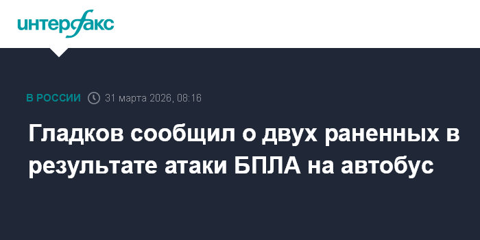 Москва. 31 марта. INTERFAX.RU - В Шебекине беспилотник атаковал автобус, ранены два человека, сообщил губернатор Белгородской области Вячеслав Гладков.