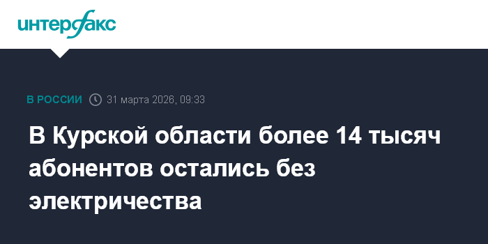 Москва. 31 марта. INTERFAX.RU - В Курской области в результате атаки на объект энергетики в Беловском районе без света остались более 14 тысяч потребителей, сообщил губернатор Александр Хинштейн.