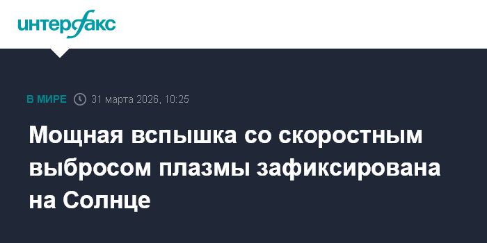 Москва. 31 марта. INTERFAX.RU - На Солнце зарегистрирована мощная вспышка класса Х, сообщили во вторник в лаборатории солнечной астрономии Института космических исследований и Института солнечно-земной физики РАН.