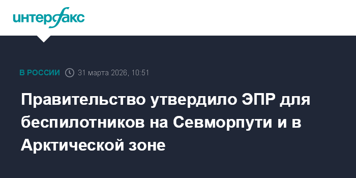 Москва. 31 марта. INTERFAX.RU - Экспериментальный правовой режим (ЭПР) по эксплуатации беспилотных авиационных систем начнет действовать в акваториях Северного морского пути и на прилегающих сухопутных территориях Арктической зоны, сообщает сайт правительства. Такое постановление подписал премьер-министр Михаил Мишустин.