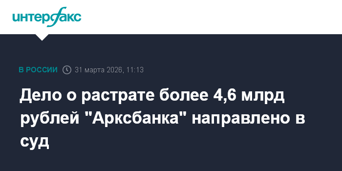 Дело о растрате более 4,6 млрд рублей "Арксбанка" направлено в суд