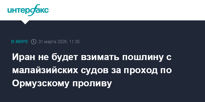 Иран не будет взимать пошлину с малайзийских судов за проход по Ормузскому проливу
