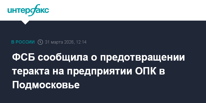 Москва. 31 марта. INTERFAX.RU - ФСБ сообщила, что на предприятии ОПК в Московской области был предотвращен террористический акт, готовивший его мужчина открыл огонь при задержании и был нейтрализован.