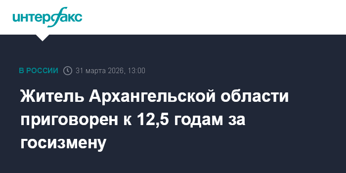Житель Архангельской области приговорен к 12,5 годам за госизмену