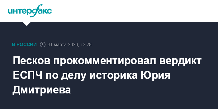 Песков прокомментировал вердикт ЕСПЧ по делу историка Юрия Дмитриева
