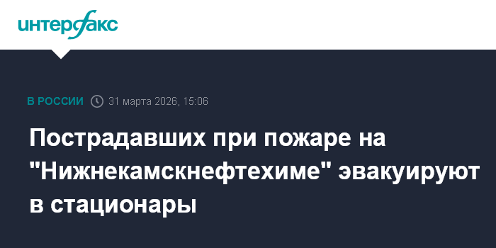 Москва. 31 марта. INTERFAX.RU - На месте происшествия на "Нижнекамскнефтехиме" в Татарстане работают почти два десятка бригад скорой медицинской помощи, сообщил помощник министра здравоохранения РФ Алексей Кузнецов.