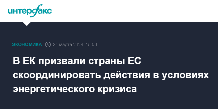 "На фоне волатильности рынка, связанной с кризисом на Ближнем Востоке и закрытием Ормузского пролива, я призываю государства-члены ЕС скоординировать действия для обеспечения поставок нефти и нефтепродуктов", - написал еврокомиссар в соцсети.