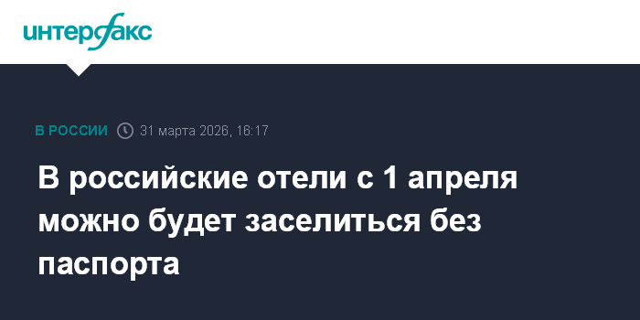 Москва. 31 марта. INTERFAX.RU - С 1 апреля в российских отелях начинает действовать новый порядок регистрации, заселиться станет возможным не только по паспорту, но и по водительскому удостоверению, биометрии или через сервисы портала госуслуг.