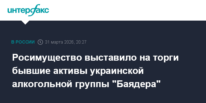 Москва. 31 марта. INTERFAX.RU - Росимущество выставило на торги акции пяти компаний, ранее входивших в украинский алкогольный холдинг "Баядера Групп", говорится в материалах на сайте ГИС "Торги".