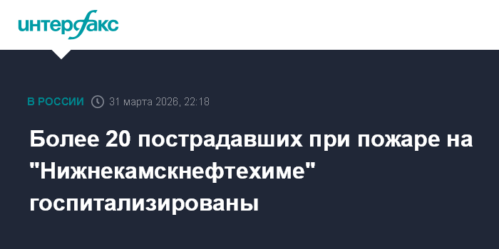 Москва. 31 марта. INTERFAX.RU - За медицинской помощью обратились 68 пострадавших в результате происшествия на "Нижнекамскнефтехиме" в Татарстане; 21 человек госпитализирован, из них пятеро - в тяжелом состоянии, сообщил помощник министра здравоохранения РФ Алексей Кузнецов.
