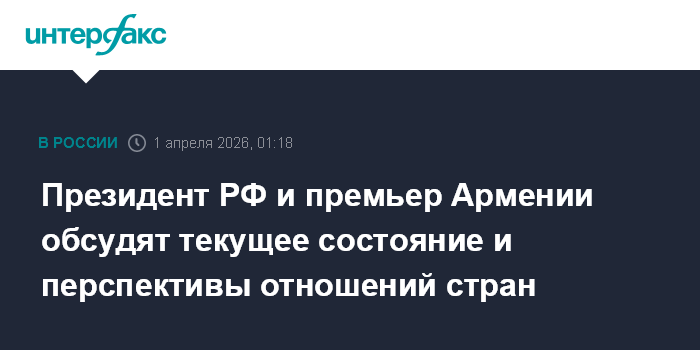 Президент РФ и премьер Армении обсудят текущее состояние и перспективы отношений стран