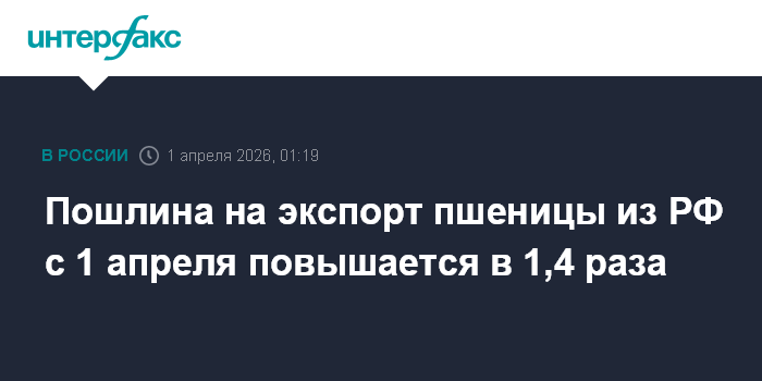 Пошлина на экспорт пшеницы из РФ с 1 апреля повышается в 1,4 раза