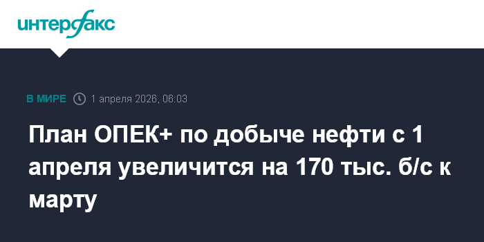 План ОПЕК+ по добыче нефти с 1 апреля увеличится на 170 тыс. б/с к марту