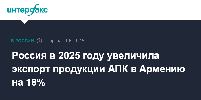 Россия в 2025 году увеличила экспорт продукции АПК в Армению на 18%