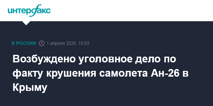 Москва. 1 апреля. INTERFAX.RU - Военные следователи расследуют уголовное дело о нарушении правил полетов по факту крушения транспортного самолета Минобороны Ан-26 в Крыму, сообщили в Следственном комитете.