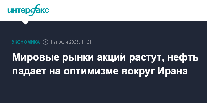 Мировые рынки акций растут, нефть падает на оптимизме вокруг Ирана