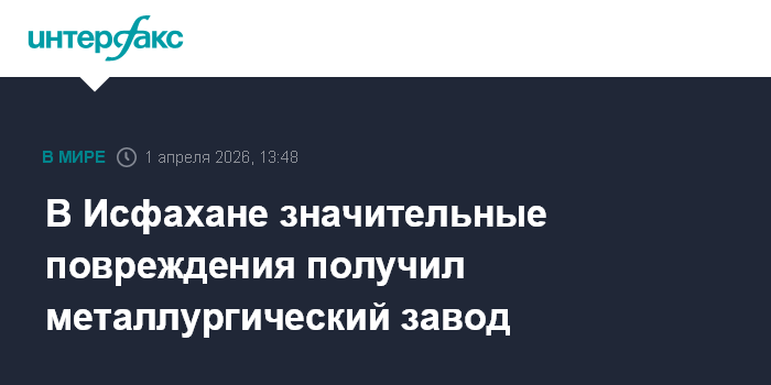 Москва. 1 апреля. INTERFAX.RU - В Исфахане в результате бомбежек значительные повреждения получил металлургический завод иранской Mobarakeh Steel, сообщает Bloomberg со ссылкой на заявление компании.