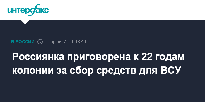 Россиянка приговорена к 22 годам колонии за сбор средств для ВСУ