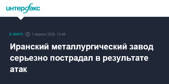 Москва. 1 апреля. INTERFAX.RU - Удары по металлургическому заводу в Исфахане, принадлежащему иранской компании Mobarakeh Steel, привели к существенным разрушениям на предприятии, сообщает в среду Bloomberg.