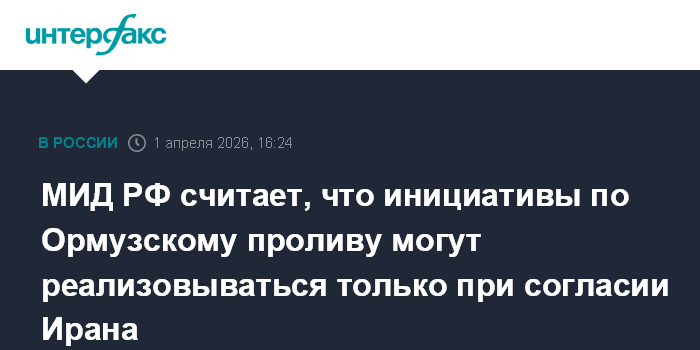 МИД РФ считает, что инициативы по Ормузскому проливу могут реализовываться только при согласии Ирана