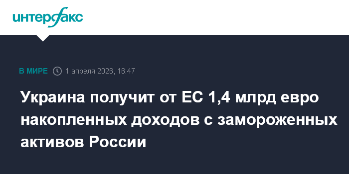 Москва. 1 апреля. INTERFAX.RU - Еврокомиссия объявила, что выделит Украине 1,4 млрд евро за счет доходов от замороженных в Евросоюзе российских активов.