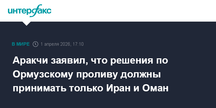Аракчи заявил, что решения по Ормузскому проливу должны принимать только Иран и Оман