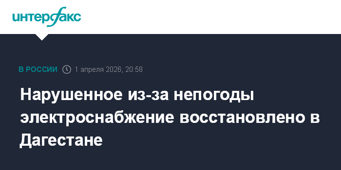 Как сообщалось, 28 марта более 280 населенных пунктов ряда районов Дагестана с населением свыше 320 тыс. человек остались без света из-за непогоды, обрушившейся на республику.