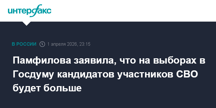 Москва. 1 апреля. INTERFAX.RU - Количество кандидатов из числа участников специальной военной операции (СВО) на предстоящих выборах в Госдуму будет значительно больше, заявила председатель ЦИК РФ Элла Памфилова.