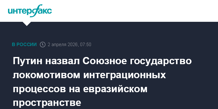 Москва. 2 апреля. INTERFAX.RU - Президент РФ Владимир Путин направил поздравительную телеграмму участникам торжественных собраний по случаю Дня единения народов России и Беларуси, в которой отметил, что Союзное государство стало локомотивом интеграционных процессов на евразийском пространстве.