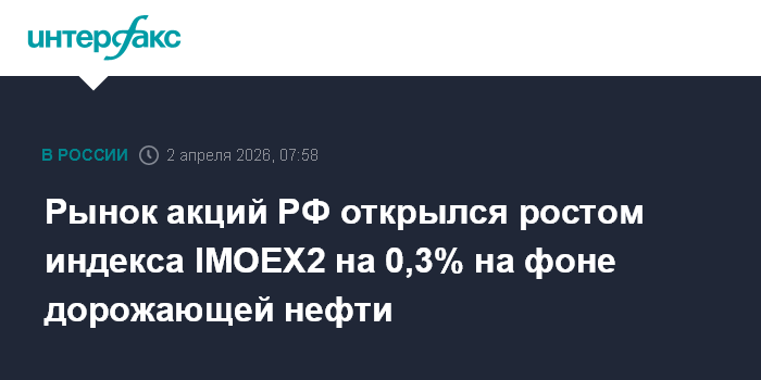 Москва. 2 апреля. INTERFAX.RU - Российский рынок акций на старте торгов утренней сессии на Мосбирже в четверг растет по большинству blue chips на фоне дорожающей нефти (фьючерс на нефть Brent подскочил к $107 за баррель) после заявлений президента Трампа о вероятном продолжении атак на инфраструктуру Ирана; также фактором поддержки выступили данные Росстата о замедлении инфляции в России, что сохраняет ожидания дальнейшего смягчения монетарной политики ЦБ РФ. Индекс IMOEX2 за минуту торгов прибавил 0,3%.