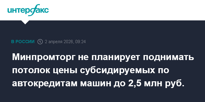Минпромторг не планирует поднимать потолок цены субсидируемых по автокредитам машин до 2,5 млн руб.