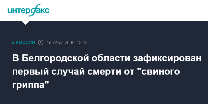 В Белгородской области зафиксирован первый случай смерти от "свиного гриппа"