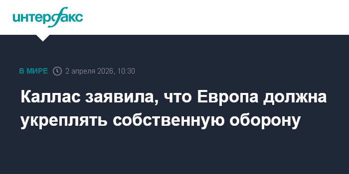 Москва. 2 апреля. INTERFAX.RU - Европейский союз должен укреплять собственную оборону в связи с новым отношением США к НАТО, заявила верховный представитель по иностранным делам ЕС Кая Каллас.