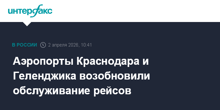 Москва. 2 апреля. INTERFAX.RU - Временные ограничения на прием и выпуск самолетов сняты в аэропортах Краснодара и Геленджика, сообщила Росавиация в своем канале в Мах.