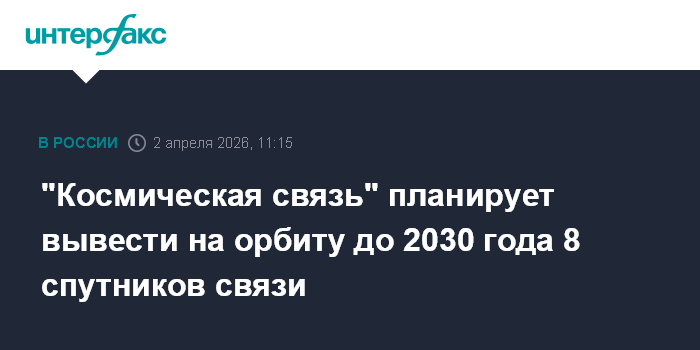 Москва. 2 апреля. INTERFAX.RU - До 2030 года на геостационарную орбиту планируется вывести восемь отечественных спутников связи, сообщил гендиректор ФГУП "Космическая связь" (государственный оператор спутниковой связи) Алексей Волин.