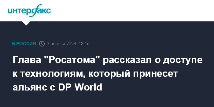 Москва. 2 апреля. INTERFAX.RU - Альянс с DP World (ОАЭ) даст России помимо инвестиций доступ к технологиям, заявил в интервью телеканалу "Россия 24" в рамках международного транспортно-логистического форума глава ГК "Росатом" Алексей Лихачев.