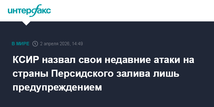 Москва. 2 апреля. INTERFAX.RU - В Корпусе стражей Исламской революции (КСИР) заявили, что его атаки по предприятиям в ОАЭ и Бахрейне в прошлые выходные были предупреждением, сообщает в четверг "Аль-Джазира".