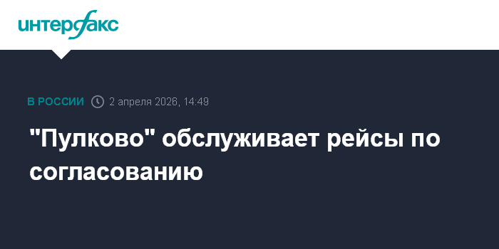Москва. 2 апреля. INTERFAX.RU - Петербургский аэропорт "Пулково" принимает и отправляет рейсы по согласованию с соответствующими органами, сообщает Росавиация.