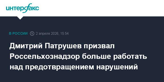 Дмитрий Патрушев призвал Россельхознадзор больше работать над предотвращением нарушений