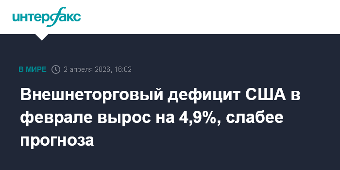 Внешнеторговый дефицит США в феврале вырос на 4,9%, слабее прогноза
