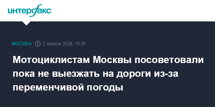 Москва. 2 апреля. INTERFAX.RU - В Центре организации дорожного движения (ЦОДД) Москвы советуют мотоциклистам не выезжать на дороги до официального открытия мотосезона, так как погода в городе переменчивая и это повышает риск аварий.