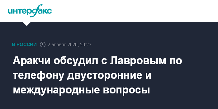Москва. 2 апреля. INTERFAX.RU - Глава МИД Ирана Аббас Аракчи обсудил по телефону с российским министром иностранных дел Сергеем Лавровым ситуацию на Ближнем Востоке и в мире, сообщает IRNA. Они также обсудили двусторонние отношения.