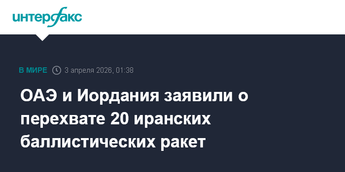 ОАЭ и Иордания заявили о перехвате 20 иранских баллистических ракет