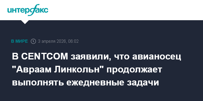 В CENTCOM заявили, что авианосец "Авраам Линкольн" продолжает выполнять ежедневные задачи
