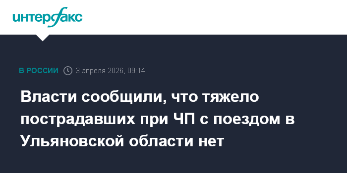В пресс-службе филиала РЖД - Куйбышевской железной дороги ранее заявили "Интерфаксу", что, по предварительным данным, в результате ЧП с поездом в Ульяновской области никто не погиб.