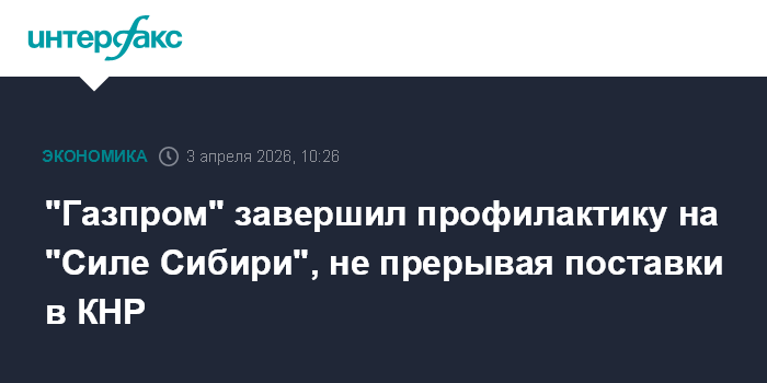 "Газпром" завершил профилактику на "Силе Сибири", не прерывая поставки в КНР