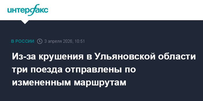 Из-за крушения в Ульяновской области три поезда отправлены по измененным маршрутам