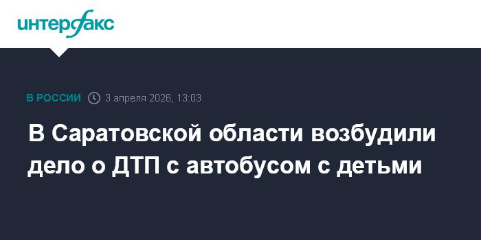Москва. 3 апреля. INTERFAX.RU - В Саратовской области по факту аварии автобуса с детьми возбуждено уголовное дело об оказании услуг, не отвечающих требованиям безопасности жизни и здоровья потребителей (п. "в" ч. 2. ст. 238 УК), сообщил региональный главк СКР.